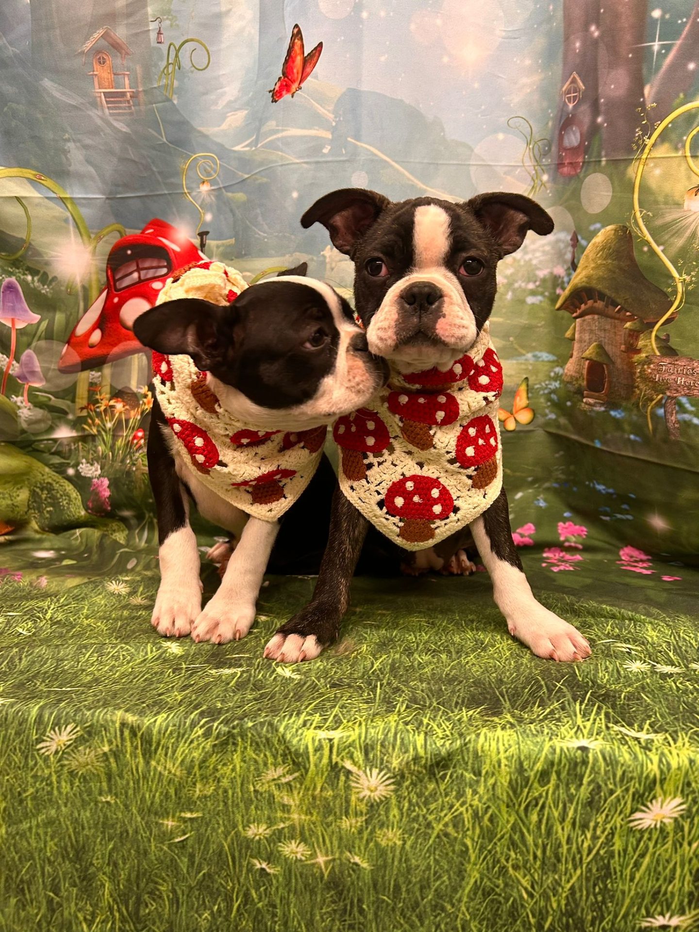 Since our Rendlesham creche (the first in Suffolk) was opened, our canine family has expanded and now includes our Boxer called Rosa, our Springer Spaniel called Daisy, an elderly collie called Lara. In recent years, we added two Boston Terriers to the family – Nona and Flo. Then we got very excited and 2 more joined – Humbug and Bonbon. We were fortunate enough to successfully mate Humbug and Bonbon who had 5 puppies! Two of the litter joined our family – Bindi and Cheddar!