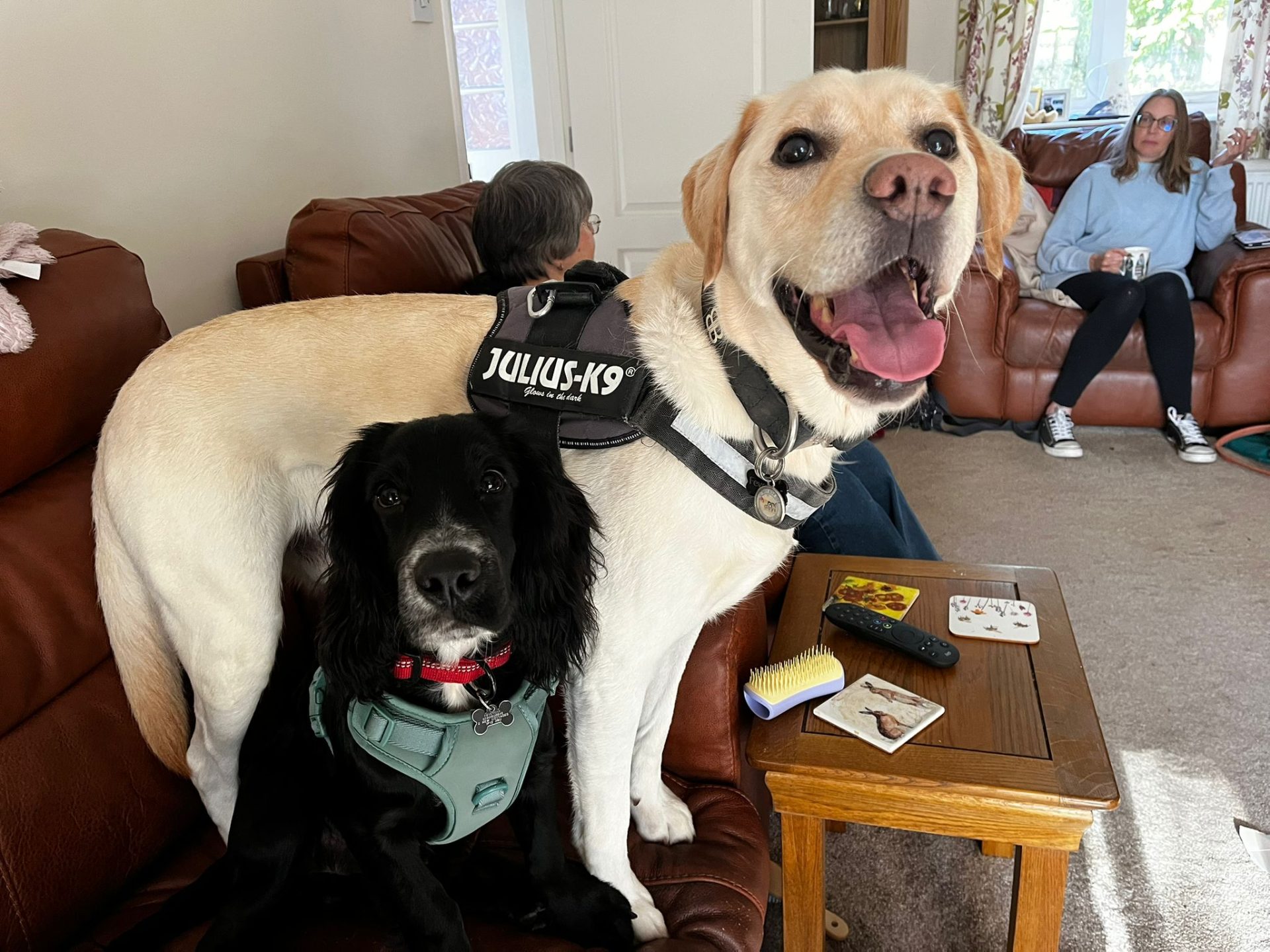 Zoe has Cooper, an energetic Goldador and Meeko, a lovely Cocker Spaniel. She also has a Lavender Corn Snake called Alfredo!